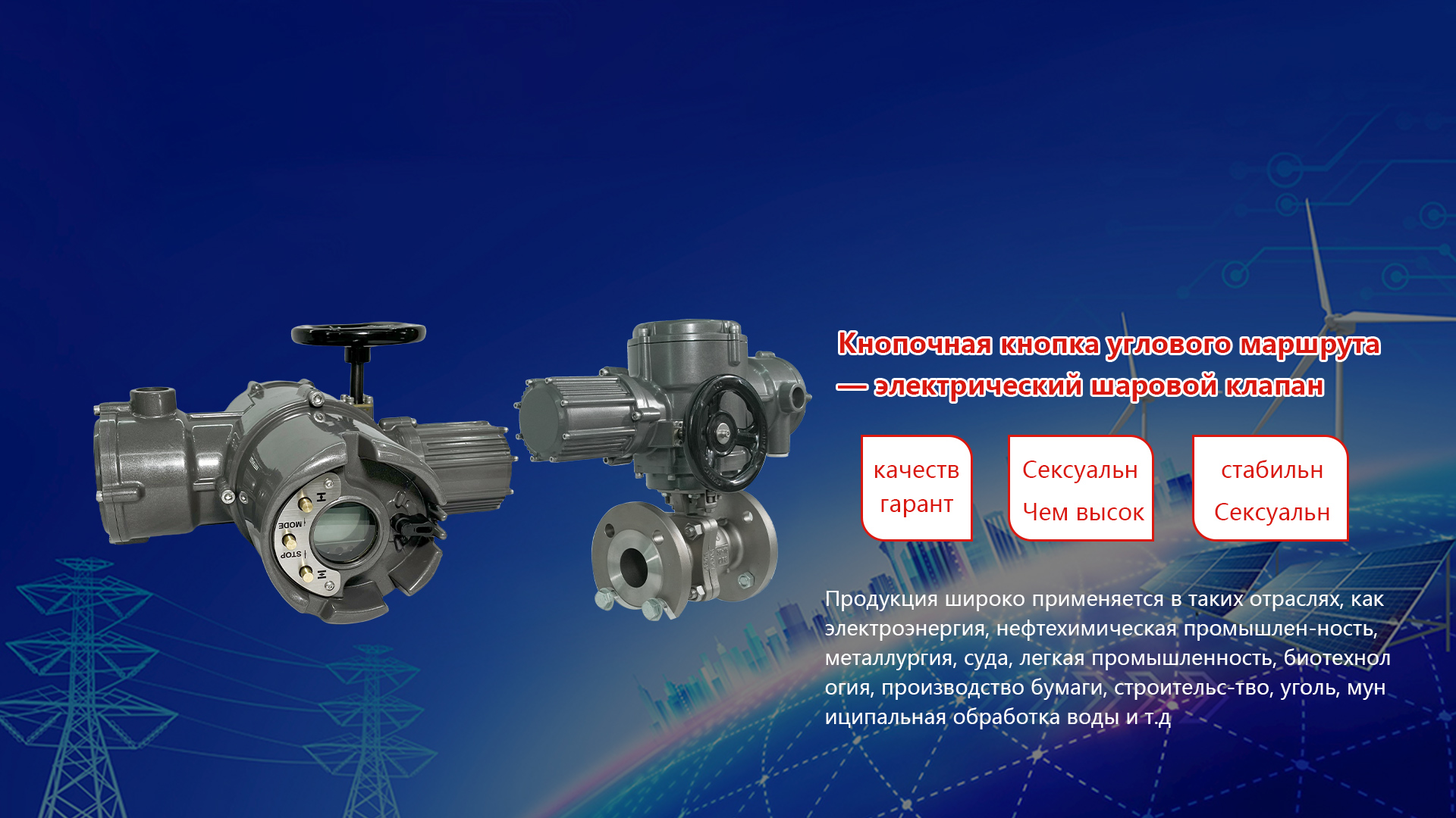 Главный электрический исполнительный орган компании, пневматический исполнительный орган, набор клапанов, клапанов, вентилей и т.д. Продукция широко применяется в таких отраслях, как электроэнергия, нефтехимическая промышленность, металлургия, судопроизводство, легкая промышленность, биотехнология, производство бумаги, строительство, угольная промышленность, муниципальная и экологическая обработка воды, с тем чтобы получить широкое признание у клиентов с высокой стабильностью и передовыми технологиями.
